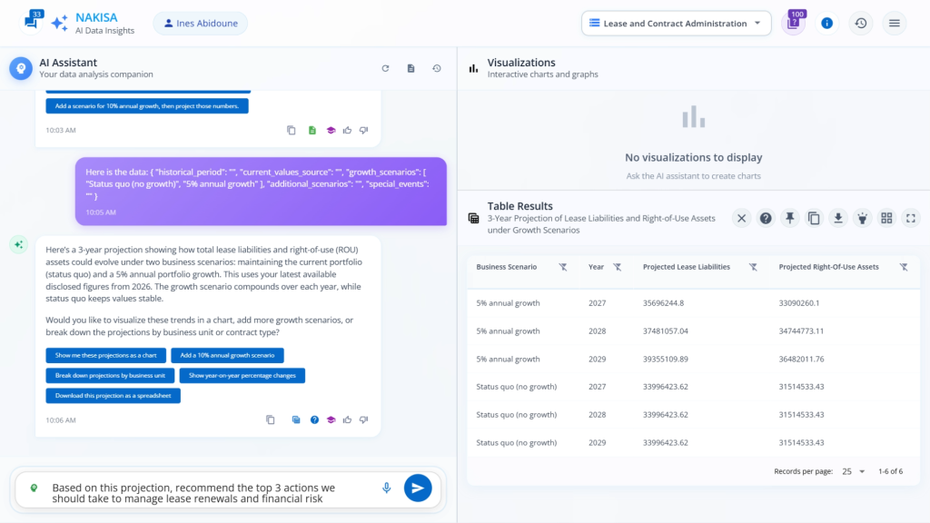 Traditional lease accounting and portfolio management often depend on manual reconciliations, static spreadsheets, and disconnected systems, making processes slow, error-prone, and reactive. Nakisa Decision Intelligence (NDI) changes this by unifying internal and external data into an AI-first platform that delivers real-time insights, forecasts, simulations, intuitive visualizations, and automated workflows, all through natural language prompts (text or voice). The result: finance and accounting teams move beyond compliance to drive strategic impact.