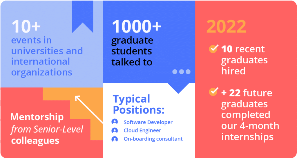 Future or recent graduates are digital and media-savvy, they are living and breathing technology. We just allow them to be themselves—enthusiastic, proactive, and energetic. We believe that recent graduates have new perspectives, and they can empower our solutions with new ideas and creative decisions. Having no or small experience, recent graduates proved to be keen learners and they achieved amazing results for our company.